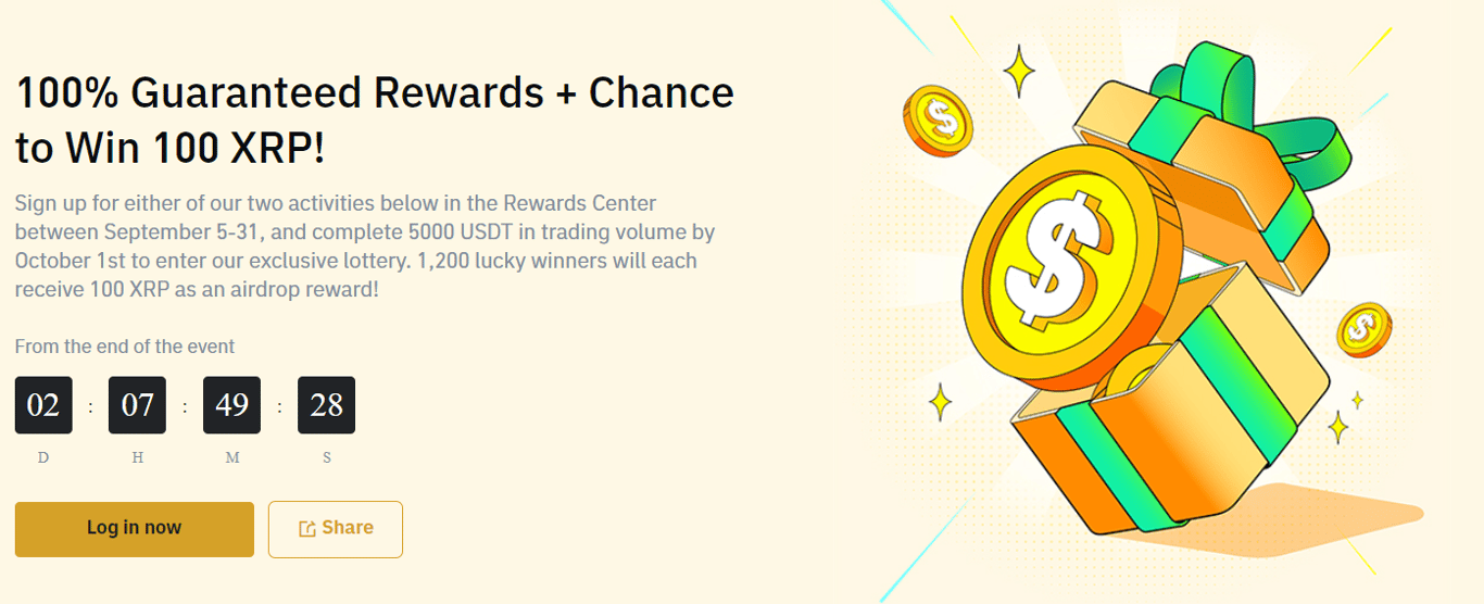 If you think that XRP price increase 0.68% is not that big, then you have to consider the events that are being held by Bitrue. Bitrue is currently holding a hot event “100% Guaranteed Rewards” which gives you the opportunity to get up to 100 XRP tokens for free!