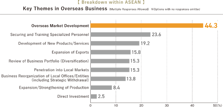 These findings highlight the growing focus and optimism of Japanese companies regarding international markets, particularly in the ASEAN region, and their expectations of positive business outcomes in the near future.