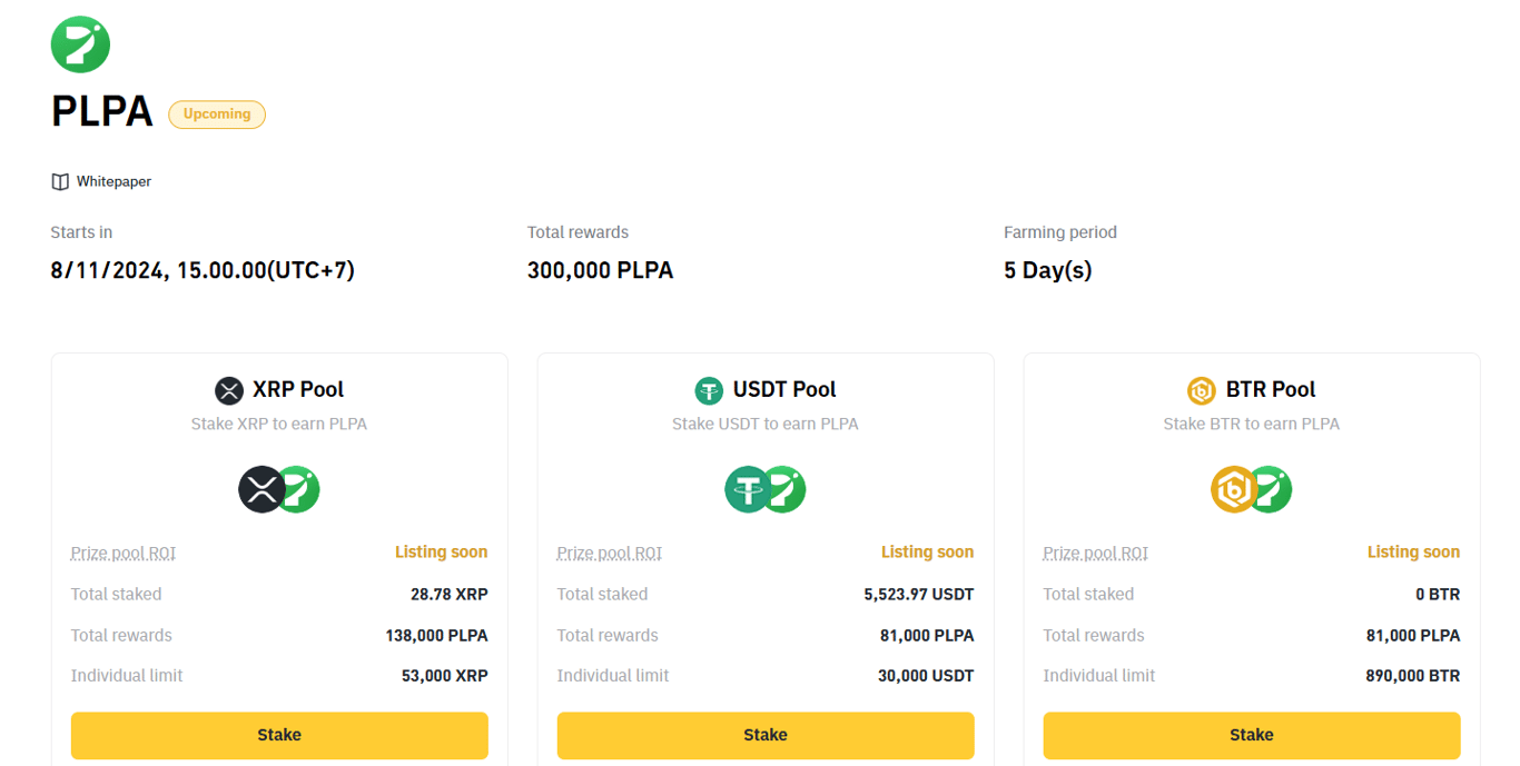 Stake XRP/USDT/BTR and Get 300.000 PLPA